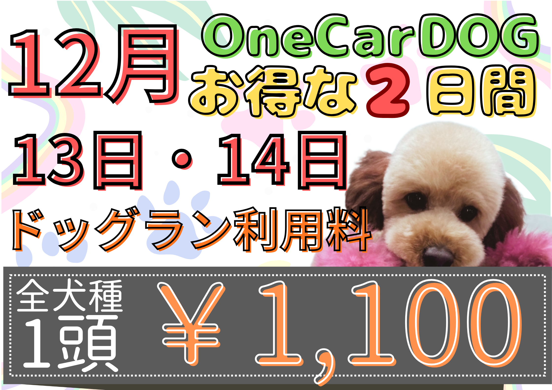 12月13日と14日はなんと室内ドッグラン利用料が1100円になります✨✨✨